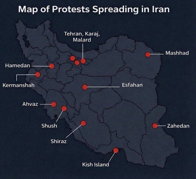 외신 보도에 따르면 이란 전역에서 통화 가치 하락과 물가 상승에 반발한 시위가 확산되고 있으며, 수도 테헤란 인근에서는 시위대가 정부 건물로 향하다 보안군과 대치했다. 현지 언론은 일부 시위 참가자들이 청사 내부 진입을 시도했다고 전했다.